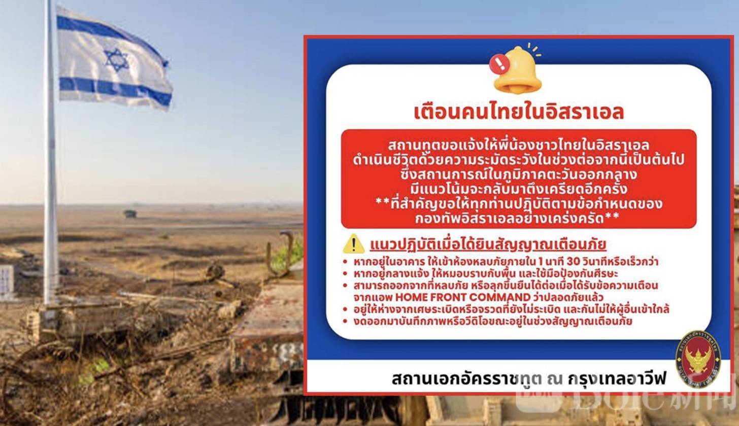 Bole新闻专讯:随着中东局势持续升温,泰国驻以色列特拉维夫大使馆于4月14日发布紧急提醒,呼吁在以泰国公民提高警惕,做好应对新一轮袭击的准备。