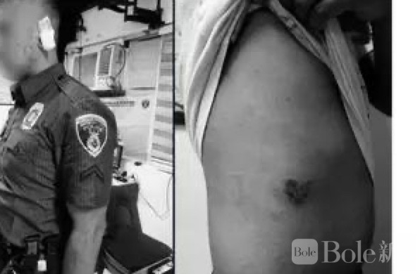 在混乱的过程中,他先是咬伤了一名警员身体右侧,随后又猛地咬向另一名警察的左耳。突如其来的攻击让现场一度十分混乱。