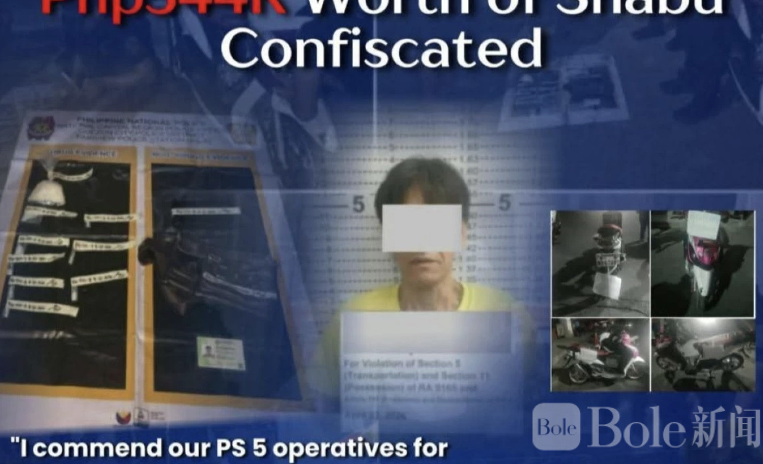 在嫌疑人被控制后,警方在其随身纸袋中查获约80克疑似冰毒,按估算市值约为54.4万比索。同时,还起获一部手机、一个腰包,以及一辆摩托车。