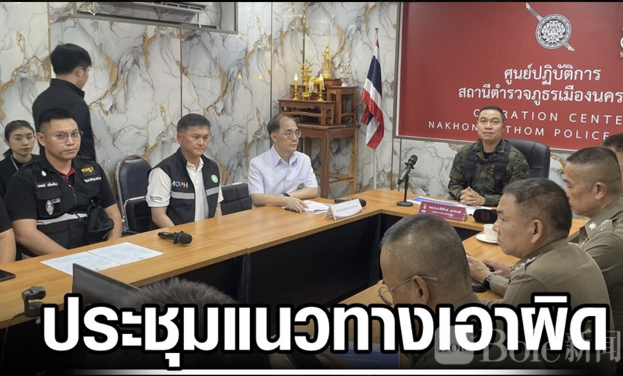 4月23日上午11时30分,那空巴吞府直辖县警局召开专项会议,警方、公共卫生部门、消费者保护机构以及法证人员共同参与,重点讨论案件原因及诊所手术流程。出席会议的包括那空巴吞府警察总指挥披塔克•乌帕蓬少将、公共卫生医生维洛•拉塔诺蒙萨昆等相关负责人。