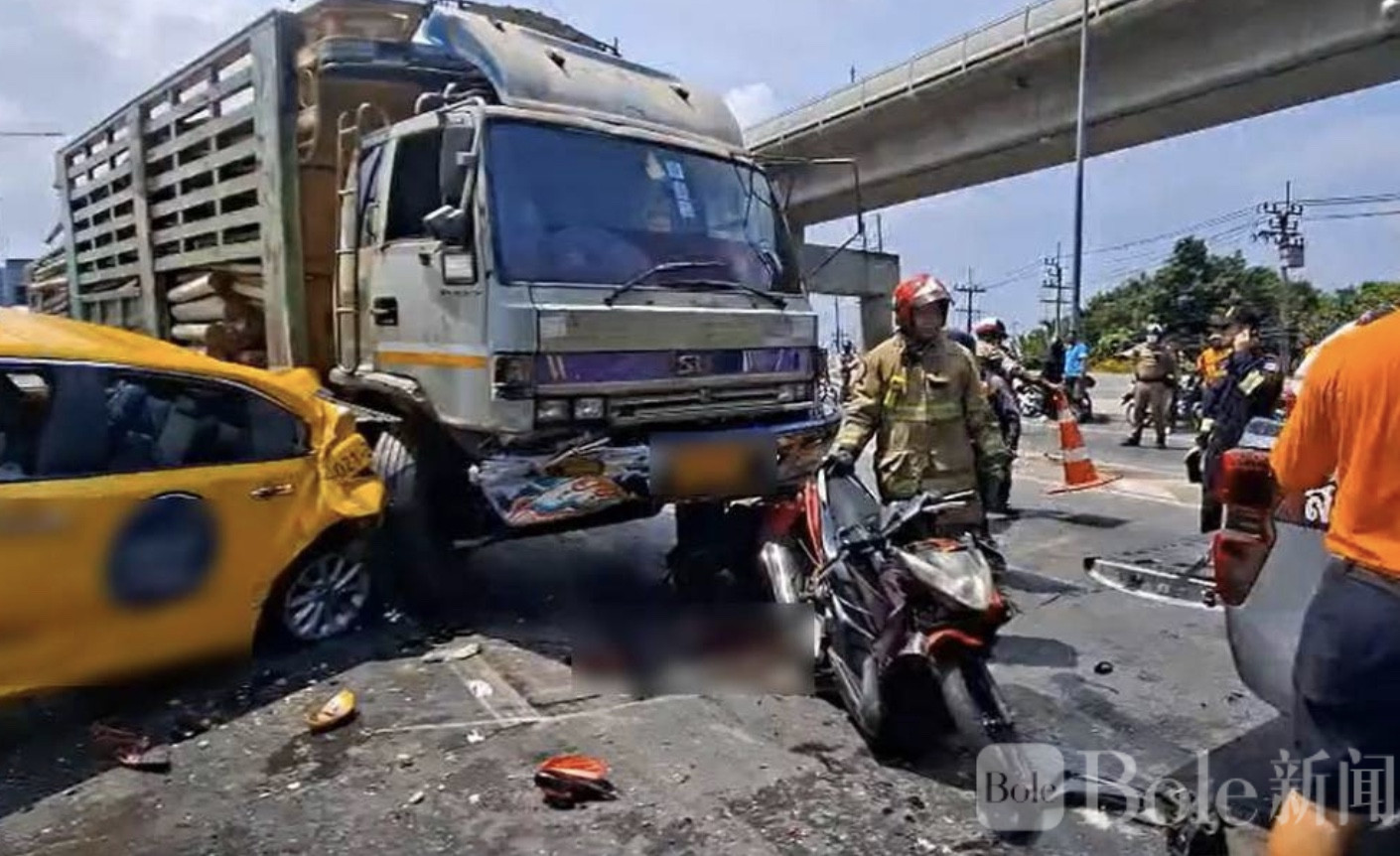 Bole新闻专讯:泰国曼谷发生一起严重交通事故,一辆十轮货车疑似刹车失灵,在行驶途中失控连撞多辆车辆,最终造成1人死亡、2人受伤的惨剧,引发当地交通一度严重拥堵。