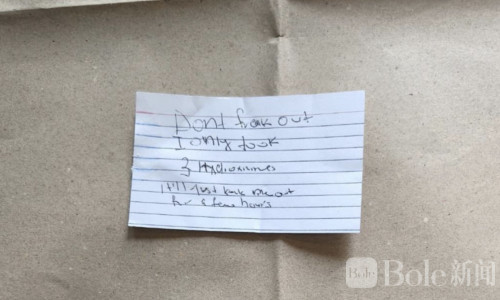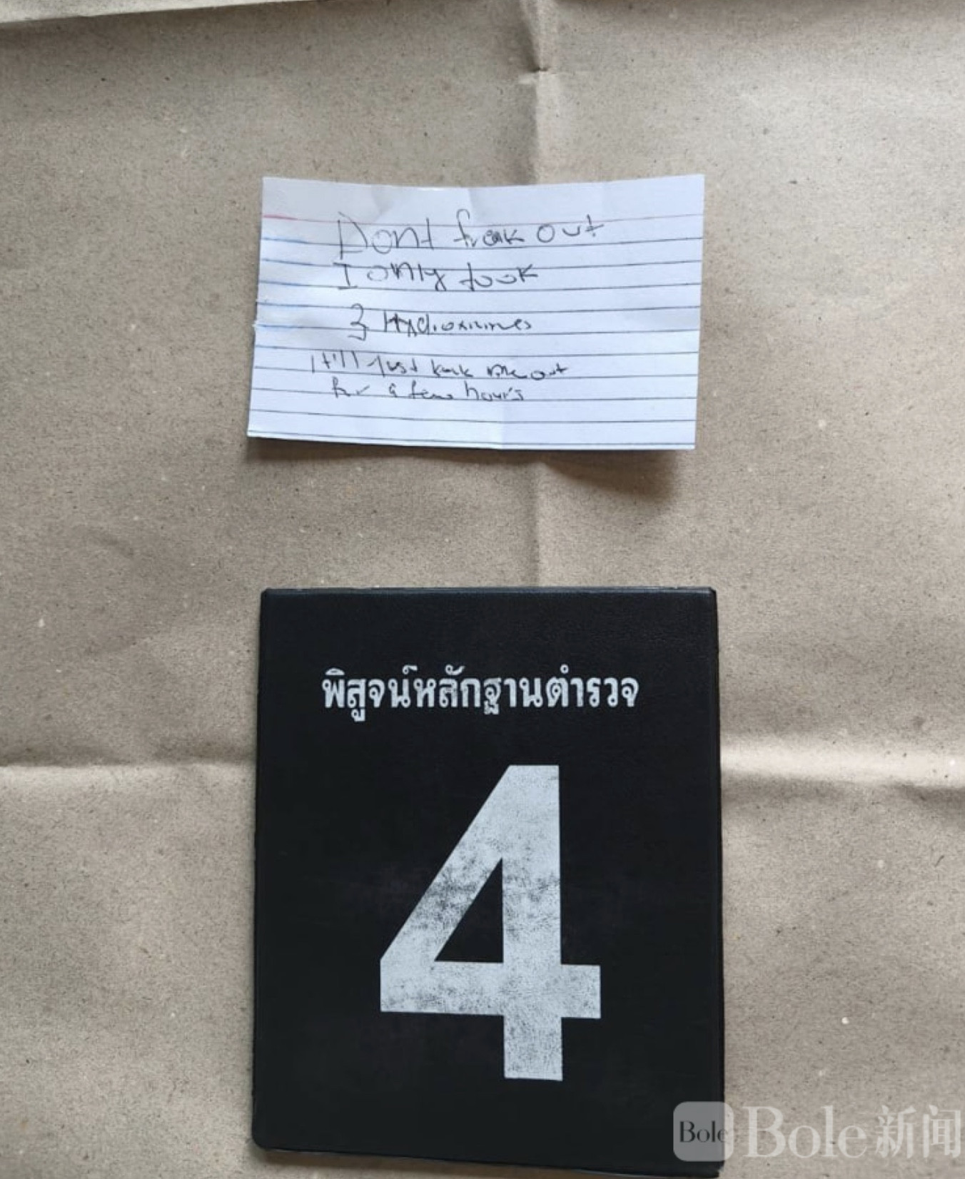 在现场勘查过程中,警方在床上发现一段英文留言,内容表达不清,疑与药物或精神状态有关。该纸条已被警方拍照取证并带回进一步分析,以确认是否与死者坠楼原因存在关联。