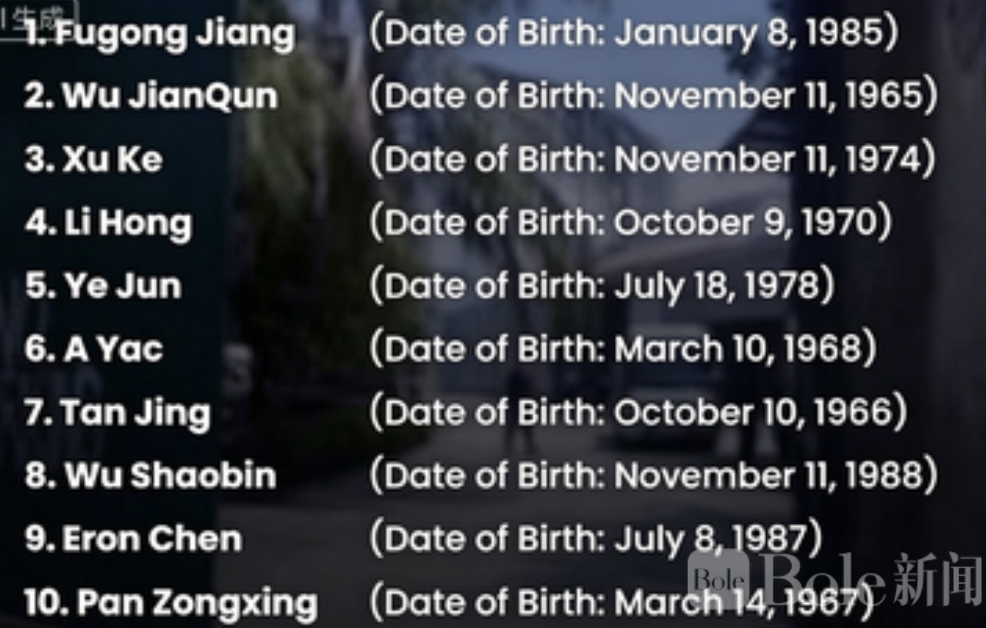 根据公开信息,这10名人员分别为江某、吴某、徐某、李某、叶某、雅某、谭某、吴某、陈某及潘某,年龄跨度较大,从1960年代出生到1980年代出生不等,个别人员信息存在同名情况,但整体均被列入同一案件调查范围。