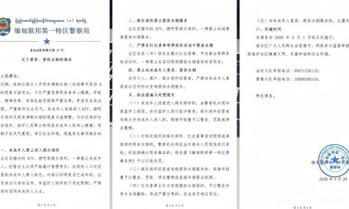 通告同时明确,任何个人或商户均不得向未成年人售卖或变相提供水烟服务,一经查实将从重处罚。对违规场所及吸食人员,公安机关将依法开展尿检,一旦确认涉毒,将依据《缅甸联邦第一特区禁毒条例》进行行政处罚。