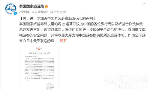 伯乐头条专讯:1月11日,泰国国家旅游局局长塔帕妮通过泰国国家旅游局中国社媒平台发布《关于进一步加强中国游客赴泰旅游信心的声明》,内容写道: