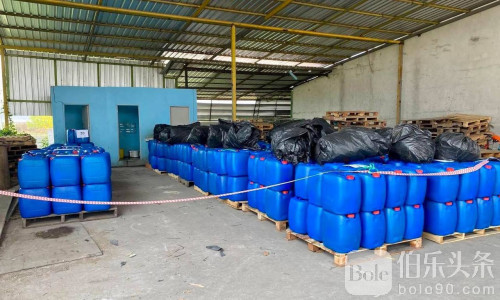 此次查获的化学品藏匿在湄索县Mae Pa镇的一家仓库内,每桶容量30升,总共400桶,桶身呈蓝色。目前,相关部门已将这些化学品查扣,并正在等待鉴定机构进一步检测,以确认其具体成分,是否与毒品生产有关。