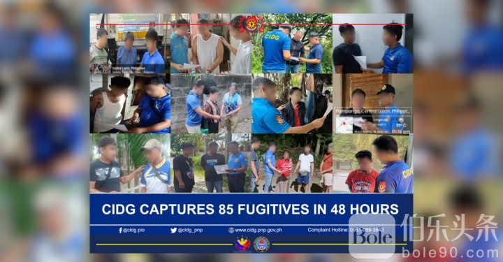 伯乐头条专讯:菲律宾国家警察刑事调查与侦查组(CIDG)近期展开为期两天的大规模执法行动,全国范围内共逮捕85名通缉犯,涉及多项严重罪行。