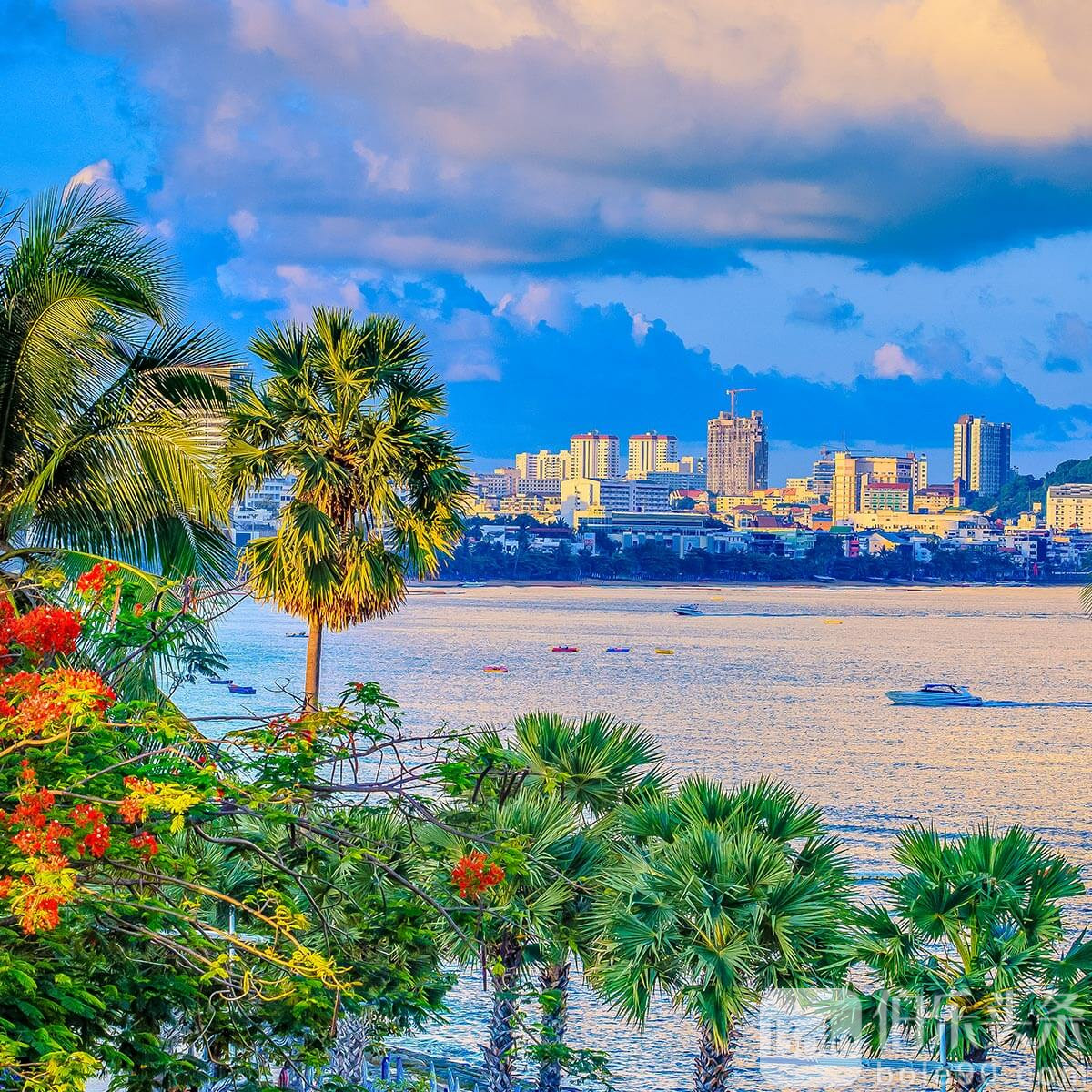 隶属于春武里府(Chon Buri)的芭堤雅,可称为泰国的黄金海岸,位于曼谷东南约147公里,开车只需1.5小时左右。这里曾是泰国王室的海上俱乐部所在地,自1950年后,因其优越的自然条件和靠近曼谷的地理优势,吸引了大量游客。芭堤雅由一条约4公里长的滨海大道构成,道路一侧是酒店、酒吧和餐厅,另一侧是椰子树和棕榈树映衬的沙滩,营造出浓郁的度假氛围,令人心旷神怡。