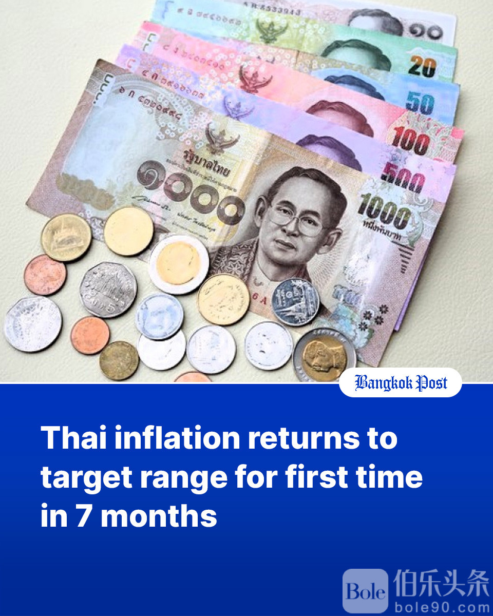 泰国商务部周一表示,受能源和食品价格上涨的推动,泰国通胀率自去年 5 月以来首次回落至目标区间。
